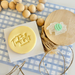 SweetP Cutters Small Text Stamps are laser-etched to deliver a clean, sharp impression every time. Each stamp includes a built-in handle, making it easy to press and release without smudging your design. For size reference, the stamp is shown on a 7cm round cookie.