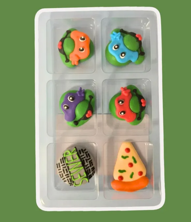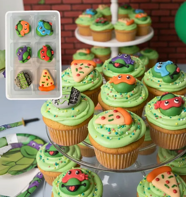 Pack of 6 edible sugar assorted Ninja Turtle Character decorations Approx. Size: 3cm x 3cm