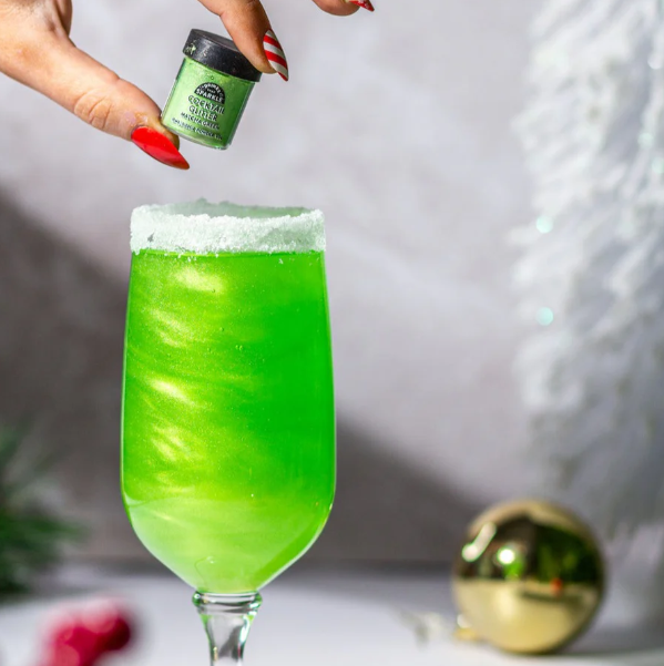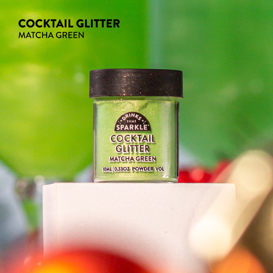 Our food grade Matcha Green Cocktail Glitter is the perfect compliment for cocktails, beer, spirits, wine, champagne, tea, ice coffee, soda, lemonade & any other transparent alcoholic or non-alcoholic beverage you can think of.