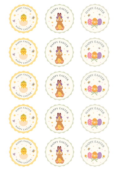 Easter Set 1 2” (5cm) Pre-Cut Cupcake Toppers 5 Designs 3 of each image 15 Toppers Per Page We print our edible images on premium edible icing shee...